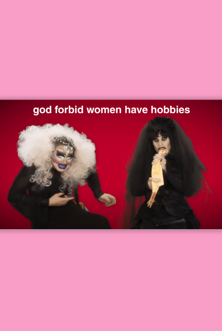 This sticker is a still from one of RuPaul's Drag Race queens Trixie Mattel and Katya's YouTube series episodes. 2.5in x 3.5in Stickers are made with durable outdoor materials, eco-friendly inks, and weather-resistant coatings. Glossy finish