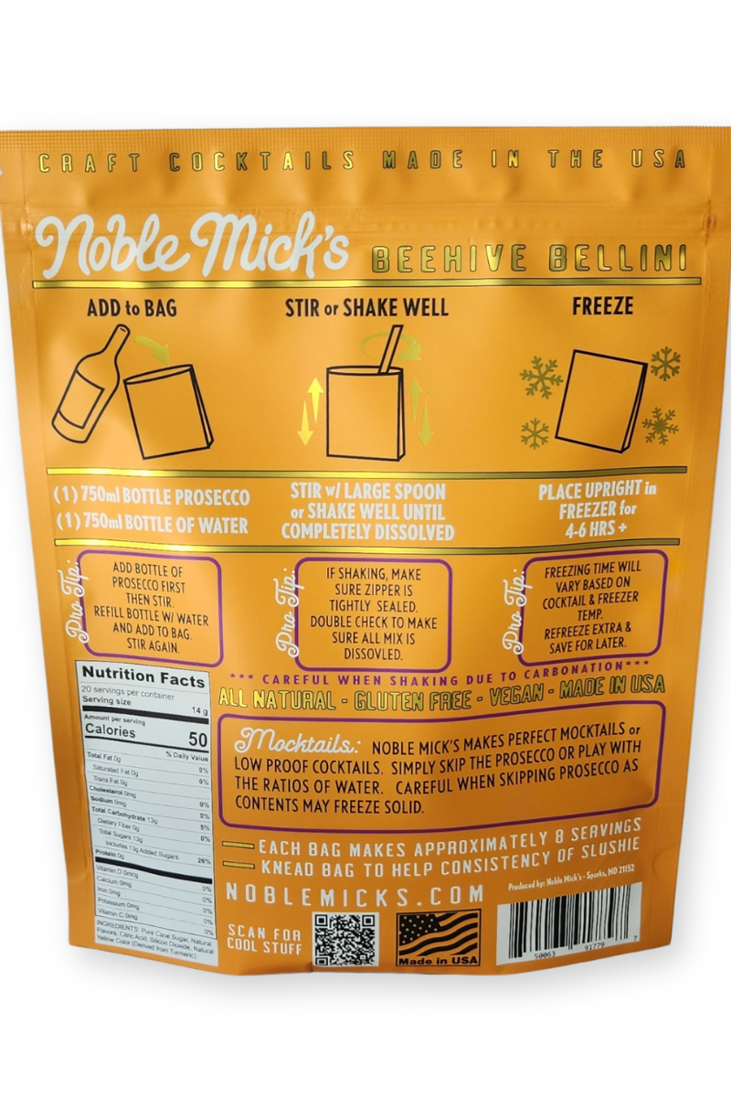 Our Frozen cocktails are unique in you ONLY ever add water and spirit...NEVER any juice, mixers or additional flavors. That's one of the things that sets us apart. 100% all natural ingredients and perfect to share with friends and family at your next party. Cheers from Noble Mick's